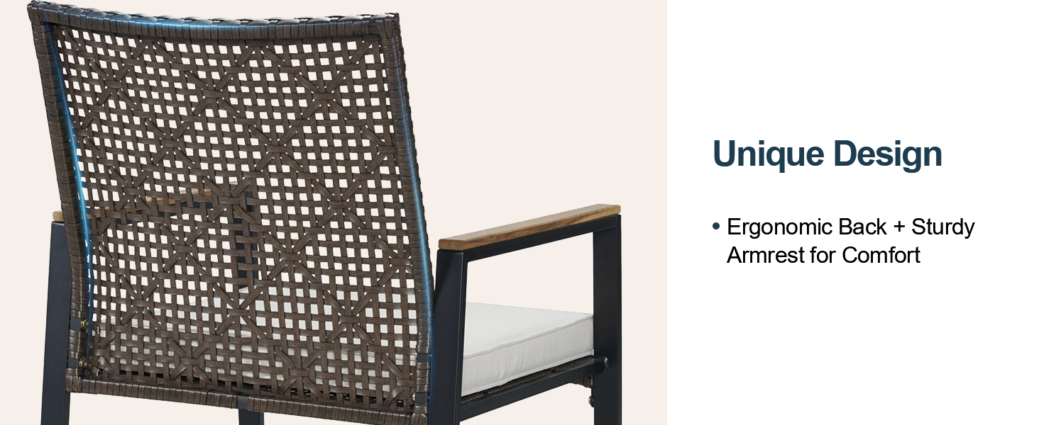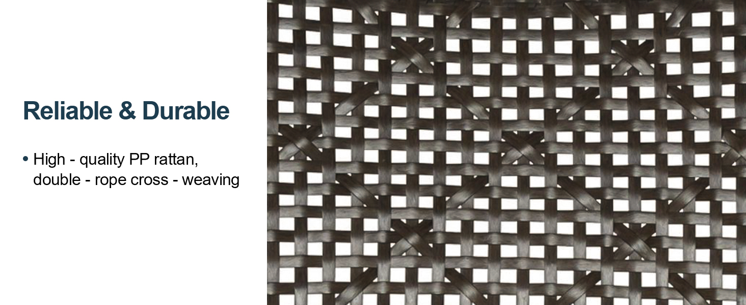 All-Weather Resilience: Crafted with all-weather PE rattan, powder-coated steel, and waterproof cushions, ensuring lasting durability and worry-free outdoor enjoyment.
